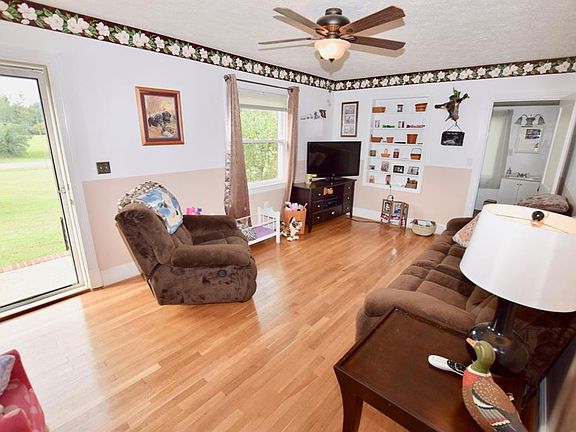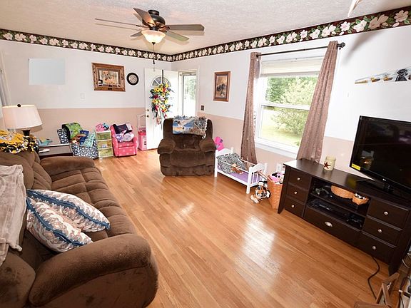 This really great two bedroom, two bath brick rancher, on almost two and a half acres is the perfect landing spot for your family! This amazing property could make an excellent starter home or downsizing option for those that want to be out in the country but close enough to all of the conveniences of town. The spacious living room features glossy hardwood floors and large picture window. The kitchen is large and includes all of your necessary home appliances. The dining area is surrounded by windows providing plenty of natural light and beautiful views. The cozy den area features a masonry fireplace with built-in wood stove. The screened-in porch is a great place to relax and enjoy the summer breeze and the patio is the perfect spot for the grill. There is also a built-on garage with storage room that offers many possibilities. The property also boasts two additional garages and a great garden area. The property is adjacent to a small municipal airport with very little traffic. It's kinda cool actually! Make plans to see this terrific property today!