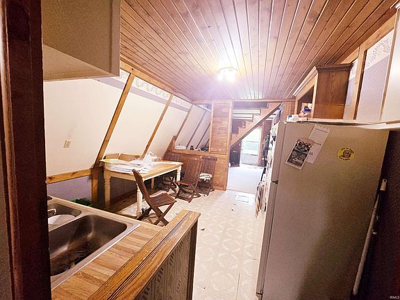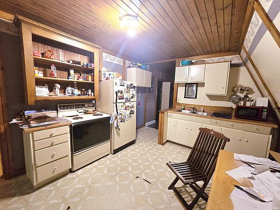 Check out this unique A-Frame! Enjoy the peace that the large lot offers with an open area surrounded by mature trees - a great spot for hosting summer gatherings surrounding a campfire. Step inside the home where you will embrace the cottage vibes. The home offers 3 bedrooms, 1 bathroom, private septic and low utilities! Located near the middle/high school, city park, and shopping! This space can easily be updated at low cost to make it YOUR home. Metal roof is only 5 years old. All appliances stay.