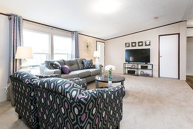Join the waitlist now! This brand new, spacious, family oriented home meets all of your quality, home needs! This perfect family oriented features 3 bedrooms, 2 baths, a modern kitchen/dining room, and utility room that would very easily fit a washer and dryer. The home includes a large master bedroom with a tub. This home is about ~1264 square feet and comes with appliances! A quality manufactured home, at an affordable price! This contemplated home rendering is being considered as a part of a nearby development at an undisclosed address. Add your name to the waitlist! *Advertised starting sales prices are for the home only. Delivery and installation costs are not included unless otherwise stated. Starting prices shown on this website are subject to change, see your local Home Center for current and specific home and pricing information. Sales price does not include other costs such as taxes, title fees, insurance premiums, filing or recording fees, land or improvements to the land, optional home features, optional delivery or installation services, wheels and axles, community or homeowner association fees, or any other items not shown on your Sales Agreement, Retailer Closing Agreement and related documents (your SA/RCA). If you purchase a home, your SA/RCA will show the details of your purchase. Homes available at the advertised sales price will vary by retailer and state. Artists’ renderings of homes are only representations and actual home may vary. Floor plan dimensions are approximate and based on length and width measurements from exterior wall to exterior wall. We invest in continuous product and process improvement. All home series, floor plans, specifications, dimensions, features, materials, and availability shown on this website are subject to change. The address listed is not representative of the location but is in the nearby vicinity.