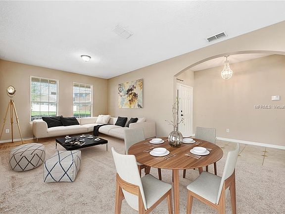 One or more photo(s) has been virtually staged. Live, work and play in close proximity to everything you need: shopping, dining and more! This exceptional home is situated on a LARGE CORNER OVERSIZED LOT among tree-lined streets in a serene community with a LOW HOA. Enjoy your privacy in this home boasting a SPLIT FLOOR PLAN, VIEWS of LAKE PEARL, and NO REAR NEIGHBORS. A lovely front porch welcomes you into this home! Spacious open, airy interior creates a beautiful atmosphere highlighted by gleaming VINYL WOOD LIKE FLOORS, abundant NATURAL LIGHT, and stunning architectural details & archways. The bright and spacious kitchen features NEWER STAINLESS STEEL APPLIANCES, 42" CABINETS, Corian countertops, a BREAKFAST BAR, and a casual dining nook with sliding doors leading to the covered lanai. Escape to your FIRST FLOOR PRIVATE MASTER SUITE with TWO WALK-IN CLOSETS plus a MASTER BATH boasting DUAL SINKS, GARDEN TUB, and a separate shower. Spacious secondary bedrooms add to the appeal of this home. **MODERN CONCEPTS include NEW PAINT.** Gather with guests and enjoy family cookouts in the covered lanai and backyard with stunning LAKE VIEWS. Parkside at Errol Estates offers plenty of amenities including a resort-style, tennis courts, playground, and a park. Easy access to SR 441, 429, plenty of shopping & restaurants. You'll have plenty of space in your new home! Call today!