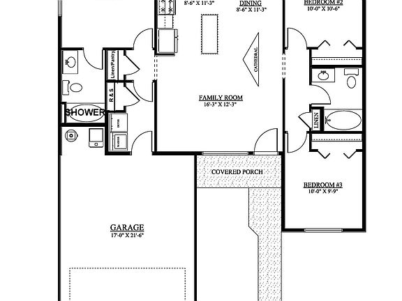 plan but not actual home) is a wonderful single level home featuring an open kitchen/living/dining,