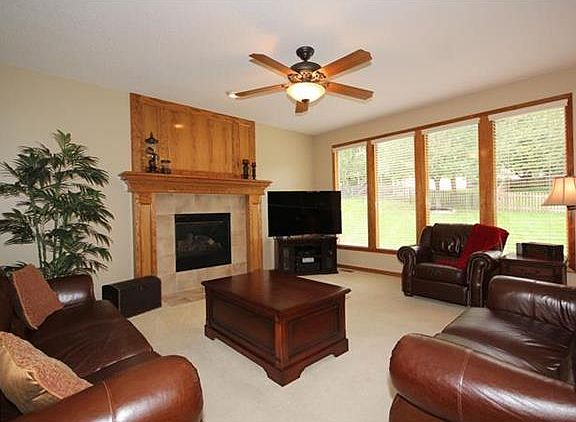 2-story in Staley High School on cul-de-sac! Kitchen with new stainless steel appliances, island, and pantry! Living room off kitchen with gas fireplace. Large master suite with double sinks, tile floor, jacuzzi tub, and walk-in closet! Second master suite upstairs with sitting area, private bath, and walk-in closet. 3rd & 4th bedrooms share jack & jill bath!! Finished basement with large rec area & full bath! Patio overlooks large, fenced yard! 2 hot water heaters!! New 50 year roof!