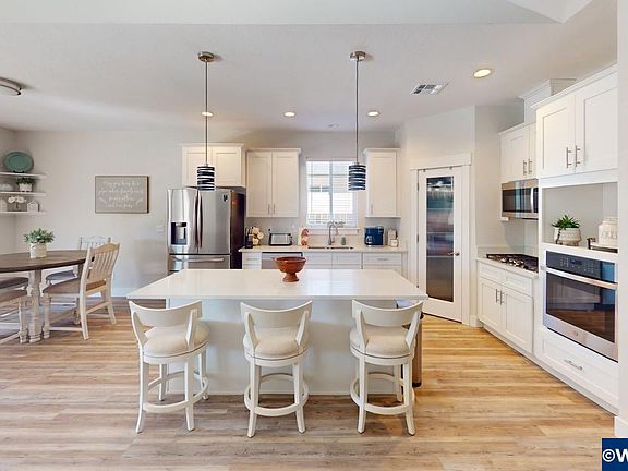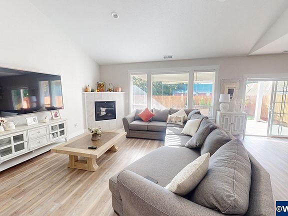 Custom built single story Home in outstanding Hoffman Meadows in Monmouth. Open & bright floorplan with 9 ft ceilings 4 bedroom and 2 bathrooms for a total of 2,282ft². Vaulted great room with luxury vinyl plank flooring, gas fireplace. Spacious bedroom suite with continental bathroom with soaker tub, tiled shower & double sink. Kitchen with soft close cabinets & drawers, 3 cm quartz slab counter tops, gas cooktop, wall oven. Fenced backyard with 16 x 22 covered patio & underground sprinklers. 3 car garage