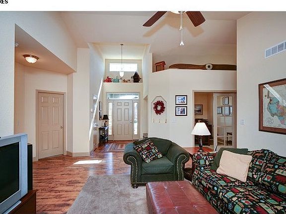 Craftsman styling w/a contemporary flair. Sit on your covered front porch & look at the beautiful foothills. Walking into the great room w/soaring ceilings & open to the large kitchen & dining. There is a study/dining/music room w/French doors for privacy. Master bedroom is separated from the other 2 bedrooms. The back yard has a huge covered back patio w/beautiful landscaping & privacy fencing. There is an oversized two car garage & a full unfinished basement. This home is ready for you!!
