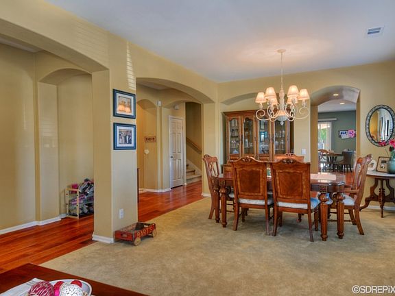 Honey, stop the car to view this gorgeous home in Otay Ranch. This beauty is located on a 7,230 square foot corner lot with 3,157 square feet of living space, 5 bedrooms, 3 baths, and a 3-car tandem garage. The home boasts amenities such as laminated wood flooring, two fireplaces (family and master bedroom), designer paint colors, a large kitchen island, and an upstairs bonus room/loft. The spacious master bedroom suite has a tray ceiling and a huge walk-in closet The backyard has stamped concrete, barbecue island, elegant lamp posts and lush landscaping that is great for entertaining family and friends. The back patio cover is wired for a ceiling fan and the yard is plumbed for water features. The exterior displays double front porches for morning and evening relaxation. The property is located near shopping, eateries, schools, and freeways