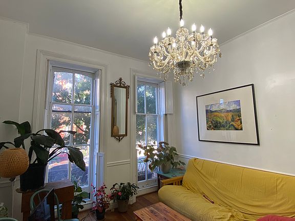 In Beautiful Bolton Hill. 2 bedroom apartment with period details around the corner from MICA close to Penn Station. Marble fireplace, chandelier, gilded antique mirror over fireplace, wide plank floor in LR. Wood floors throughout. Beautiful Garden out back. Pets allowed. Washer/dryer in unit. Landlord pays heat and water. Available May 1. $1850 per month. 1 month security deposit. One year lease Owner pays heat and water.