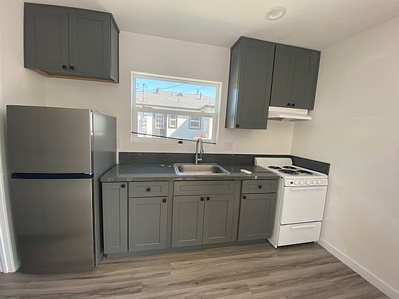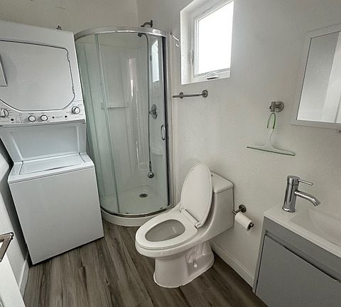 Basically a TRI-PLEX style property. A newer built garage/ADU conversion. 1 Bedroom, 1 Bath unit that includes a heat/cool mini split, refrigerator, inside laundry center, internet ready, water and trash. Street parking, No Pets, No Smoking of anything indoors. SECTION 8 VOUCHER HOLDERS WELCOMED. The "living room" area can hold a futon/sofa bed for use if needed. A very cozy place to call home.