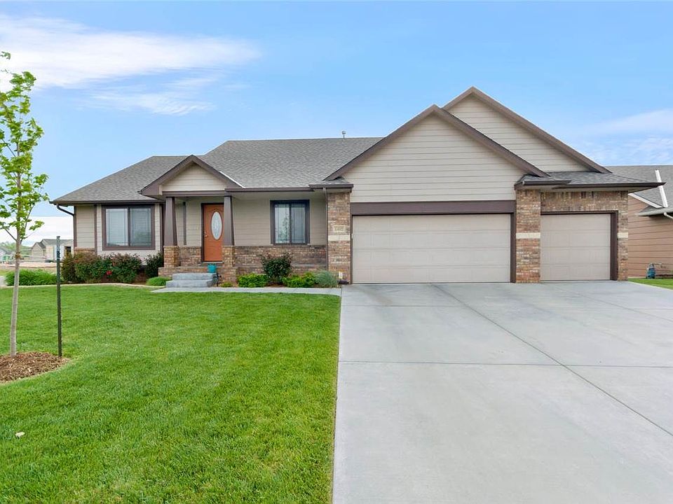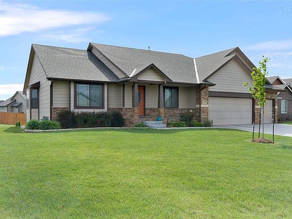 Way better than new. One owner and extremely well maintained home. Corner lot, beautiful wood floors, all kitchen appliances stay, nice sized covered wood deck and patio, fenced yard, high vaulted ceilings, open floor plan, granite counter tops. A well and sprinkler system, beautiful yard. Close to the new Christa Mcauliffe Academy School. 3 Car Garage, 5 Bedrooms, 3 Full Baths, His and her walk in closets, a large family room with space for a wet bar, one bedroom in basement has a walk in closet. Easy to show, must see to appreciate. Lower special tax, neighborhood pool, playground and walking trails, situated on a quiet street yet close to everything that the east side of Wichita has to offer. There is a storm shelter in the basement which could be used as additional storage as well.