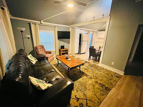 The house was lovingly restored in 2017, gutted to the studs after a fire. It has an open floor plan and cathedral ceilings. There is a covered front porch and a deck with an arbor off the kitchen. Large yard with room to rebuild a 400 sq foot, 2 story garage / storage building. House is turnkey, some furniture, appliances, and washer and dryer is offered with sale, unless rejected by buyer. 2% commission for buyer agent.