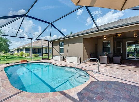 You're looking at the only newer built home in the entire SW portion of the city with four bedrooms, a den, three full baths and a pool under 600K! City water and sewer are in and the majority of the balance has been paid off by the sellers. Built in 2014, this home features a custom saltwater pool with a full pavered lanai complete with electric heater. Thanks to it's Western rear exposure you'll be enjoying SW Floridas beautiful sunsets every evening over that custom pool. The interior of the home features wood finish flooring and tile throughout the living areas and den, upgraded fixtures throughout and upgraded GE Slate appliances in the kitchen. Located in a great neighborhood centrally located to everything the area has to offer. The Kennedy Lake system, the largest (and only) all sports freshwater lake system in the city is just a few blocks North as is Hunters Run Golf Course. You're also a short drive from all of the shopping and dining options of the Pine Island Rd and Veterans Memorial Pkwy retail corridors. The pictures and 360 degree video walk throughs aren't misleading, this is a great looking, very new home that needs to be seen in person!