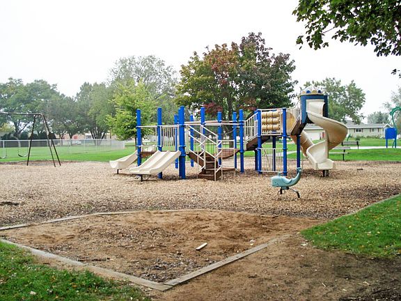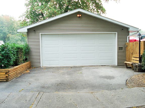 Living rm has Harman Pellet stove-Tile flooring in living and dinette-master bath with jet tub. Built in corner cabinet in dinette. Wood ceiling in living rm. Stove-refrigerator & dishwasher included. Across from Bay View Park.Nice 2.5 stall garage!