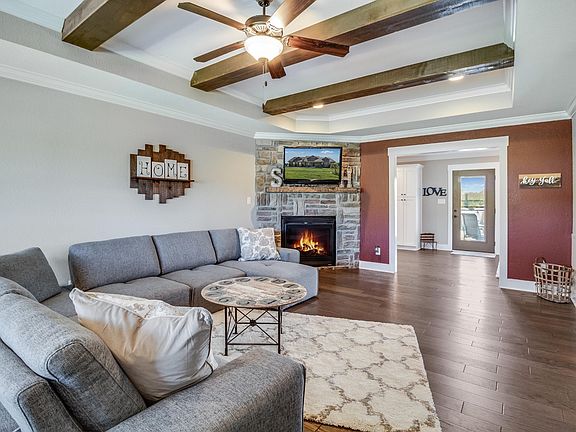 Upgrades abound in this immaculately maintained ranch home featuring coffered ceilings, exposed beams, fireplace, granite countertops throughout, tile shower and separate whirlpool tub, hardwood and tile look floors, and a spacious deck to enjoy the mountain view. This home is better than new!