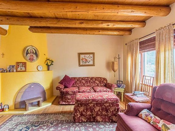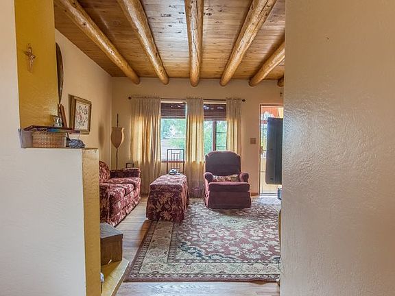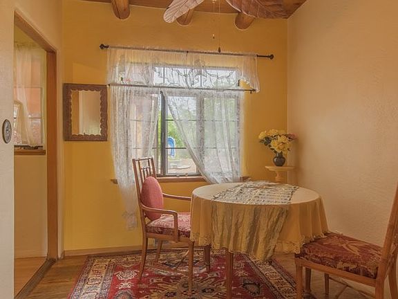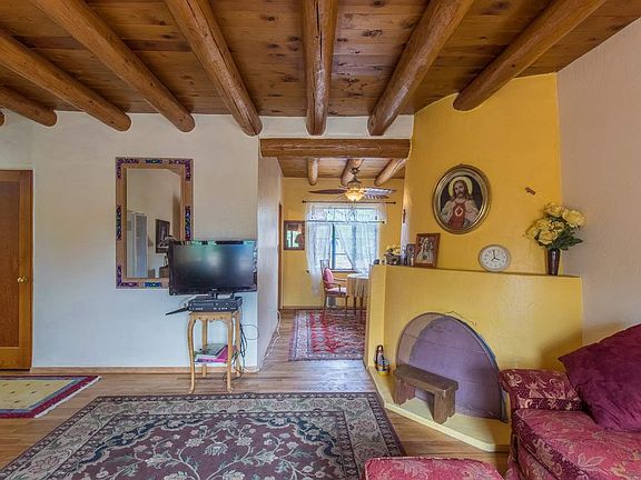 Lovingly maintained Stamm home in wonderful neighborhood. This 1292 +/- sqft, 3 bedrooms, 1 bath home is filled with santa fe charm with refinished Vigas/tongue and groove and wood floors. The garage that has been beautifully converted has heat, double pane windows, separate entrance, talavera tile floors, ceiling fan and skylight & would be perfect as a 4th bedroom, studio, additional living space or office. The grounds are very sweetly landscaped with mature landscaping with trees and flowers. There is a walled entry courtyard-Front and rear covered portals. Features include: Living room with kiva fireplace- double driveway for plenty of parking-storm windows-stuccoed wall around the property-storage shed with shelving-Kenmore washer/dryer- Newer refrigerator (2015) in kitchen with dining area-Ceiling fans-Bathroom with built-ins and newer tile floors-Newer light fixtures-Bamboo blinds and nicho. This is a gem; not to be missed.
