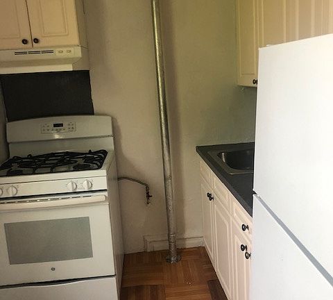This spacious one bedroom on the fourth floor of a walkup building close to the 3/4 Utica Avenue train stop features a living room, separate kitchen and queen-sized bedroom and bathroom. Heat and hot water are included in the rent of this stabilized building. Tenant pays electricity and gas. Requirements include $50K annual income and good credit. Move in costs are first month, security deposit and brokers fee.