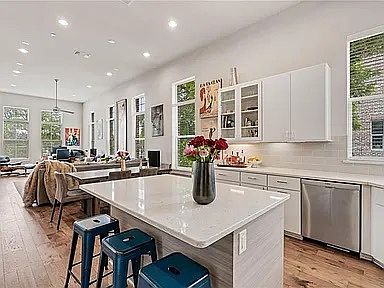 Unique Brownstone-style townhome that has it all. Gorgeous townhome in a prime Austin location! Loads of natural light, and an end unit with a beautiful 40' tree outside of the windows. Steps from Ladybird Lake, dining, shopping, and Downtown. 12' ceilings, Bosche appliances, hardwood floors, custom cabinets, and quartz countertops. Large walk-out balcony with flooring. Amazing walkability to the Town Lake hike and bike trails, South Shore entertainment district, and Oracle. Minutes to Downtown Austin. Min 1 Year Lease, Parking allowed in front of property, no smoking allowed inside property