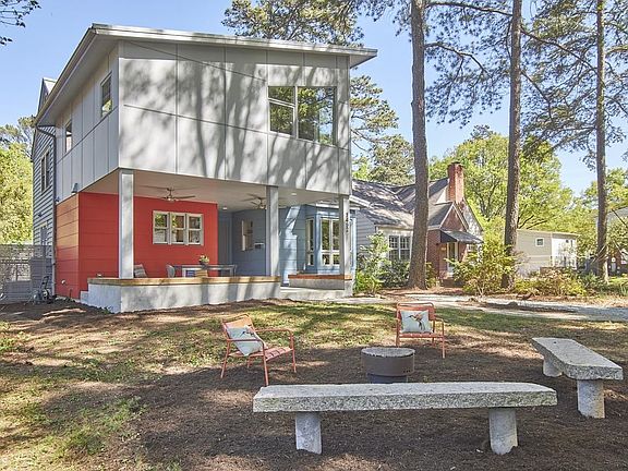 If George Watts Carr and Brian Shawcroft made a house-baby, this house would be it! A modern addition was envisioned and integrated with the original Colonial Revival by architects Ellen Cassilly and Meredith Pittman. Thoughtful consideration was given to the neighboring homes and echoed in the exterior design. BuildSense implemented the renovation in 2012-13, with sensitivity to many of the home's original features. The main floor offers a den, living room, dining room, kitchen, and half bath. Upstairs, two bedrooms and a hall bath, plus a study/nursery and the primary bedroom with two closets and an en-suite bathroom. Outside is the most delightful and deep front porch with two fans for bug-free summer sitting ... plus a fire pit! The backyard is fenced and includes specimen plantings and raised beds for three-season gardening. Chickens can convey! Detached wired workshop/storage completes this one-of-a-kind Watts Hillandale home. Roll/stroll to three neighborhood parks, 9th Street, Duke, grocery stores, restaurants.