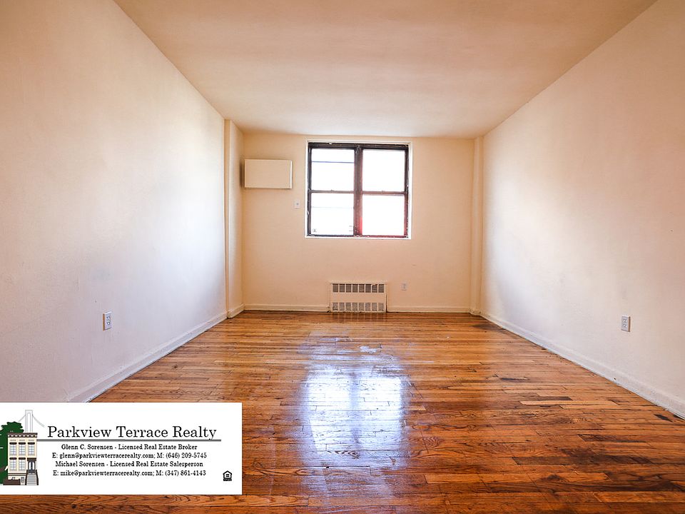 Brand New and Generous studio apartment in a co-op building. This listing is newly renovated including a brand new kitchen space with beautiful white lower and upper cabinetry. The apartment boasts hardwood floors throughout which have been newly sanded and polished. The apartment is on the first floor of a very well kept building with a live-in super. Small pets are welcome upon submitting photos. Heat and water are included. Immediately outside your doorstep are CVS, laundromat, supermarkets, various restaurants and pizzerias. Apartment Features: - Generous Studio-Sized Apartment - Hardwood floors - Newly renovated Kitchen area - Plenty of storage (2 closets) Income & Employment Screening is a must.