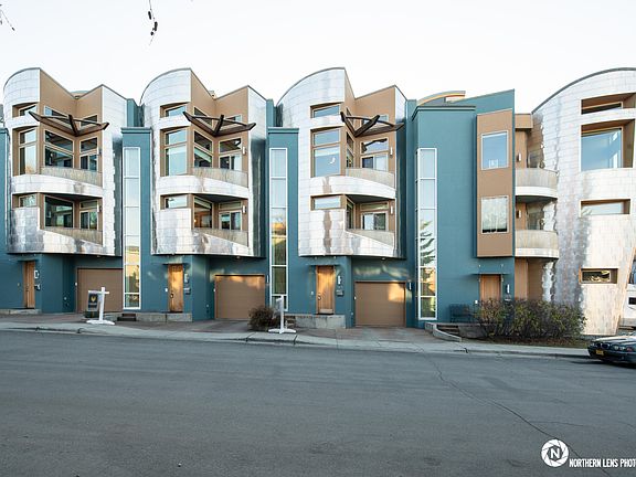 Downtown living in this Bootlegger's Cove townhome. Private rooftop garden deck w/stunning Cook Inlet views, soaring ceilings, in-floor radiant heat, Wolf range and SubZero fridge, heated driveway and oversized 1 car garage. Private elevator. Wired audio and speakers to every room. Steam bath, central vac, gas fireplace. Come check out the quality, high end finishes that truly set this unit apart
