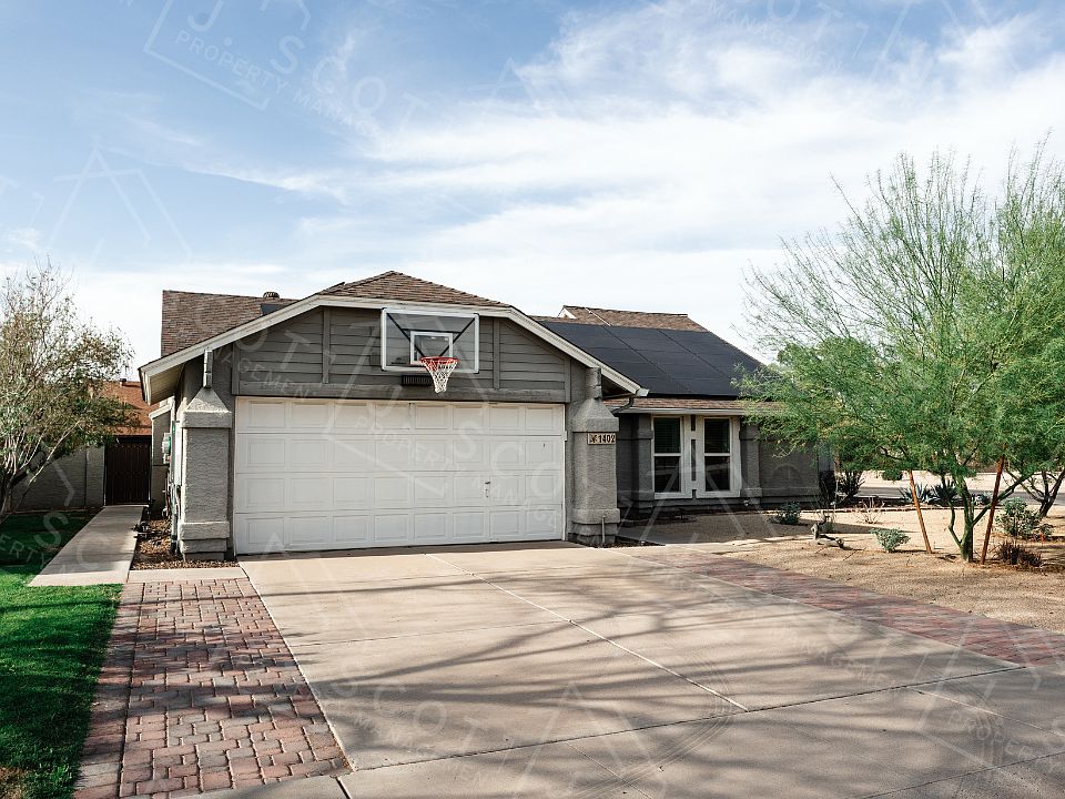 Spacious 4-Bedroom Home with Private Pool in Prime Location! Spacious and beautifully maintained 4-bedroom, 2-bath home offering 1,739 sq. ft. of comfortable living space. This home features a 2-car garage, stainless steel appliances, an RO system, and stunning granite countertops. Enjoy the elegance of tile and wood flooring throughout, along with ceiling fans in every room and soaring vaulted ceilings. The bedrooms boast brand-new carpeting, while the master suite includes a walk-in closet and a deep soaking tub for relaxation. Entertain in the formal dining room or unwind by the cozy fireplace. A washer and dryer are included for convenience. Step outside to a backyard oasis with a private pool, desert landscaping in the front, and lush grass in the back. Located near shopping, restaurants, top-rated schools, parks, and with easy freeway access, this home is in a prime location. Don't miss out on this incredible rental opportunity! ANIMALS: Dog: 1 Cat: 1 Max Animals: 2 Max Weight: 35lbs Pet Deposit: $200 Pet Rent: $100 UTILITIES: Electric: SRP / Reported average cost $200 Gas: NA Water/Sewer: City of Chandler / Reported average cost $82 Trash: City of Chandler / Reported average cost $22 OTHER PROPERTY INFORMATION: Pool Service: Included Landscaping: Included Rooms and Interior . High ceilings . Hardwood floors . Carpet floors . Fireplace . Family room . Living room . Dining room . Formal dining room . Walk-in closet . Ceiling fans . Master bath Kitchen and Bath . Granite kitchen counters . Electric stove/oven . Tile floors . Eat-in kitchen . Stainless steel appliances . Dishwasher . Refrigerator . Microwave . Garbage disposal . Pantry Utilities and Extras . Central heat . Central air conditioning . Garage parking . Washer/dryer included . Cable ready . Internet access included . Not furnished Building and Surroundings . Yard . Fenced yard . Swimming pool Lease Terms . Tenant pays all electric . One year lease . No smoking . Parking included . 4 parking spots . Dogs ok up to 25 lbs . Cats ok . Tenant pays trash removal . Tenant pays water/sewer Contact Us: J. Scott Property Management Jason Adair See more photos and SCHEDULE A SHOWING at: