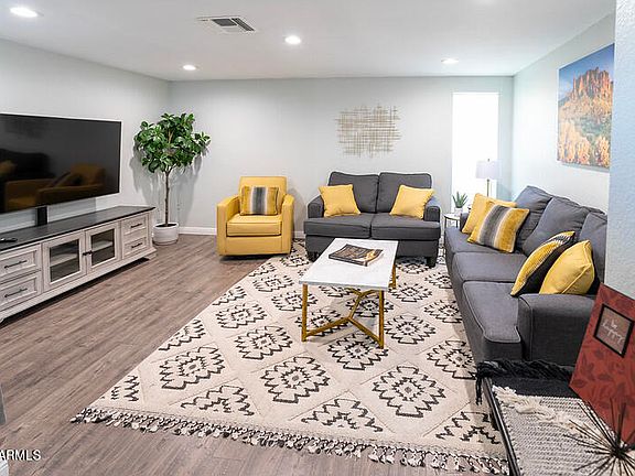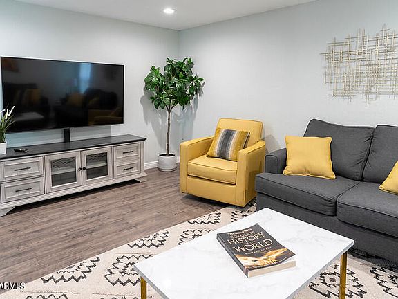 impressive 4 bedroom situated on an oversized lot. Beautiful decor and furnishings stay so this home is move in ready. Large separate living room with plenty of space for entertaining and gathering. Kitchen with island looks out to gorgeous backyard and opens to spacious dining area which could also be used as a a family room. Beautiful vinyl plank flooring and nice updates throughout. Master bedroom has french doors that lead to a patio to enjoy the lush backyard. 2 car garage, lots of curb appeal. Great neighborhood with no HOA and convenient to schools, shopping and parks.