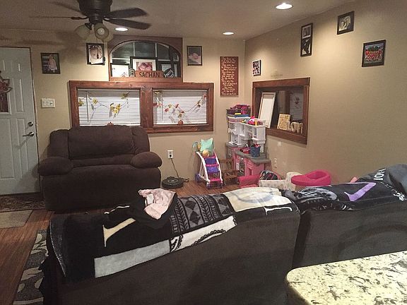 This three bedroom home has had many updates inside and out. Outside it has been sided, a patio was added, nice deck on the front and newer windows throughout. Inside they opened it up from front to the back and made a living room and nice custom kitchen with solid surface counter tops and a large snack bar. The bathroom was updated with a large bath, vanity and ceramic tile. Nice backyard with mature trees. Close to city parks and walking trail. Recently appraised!