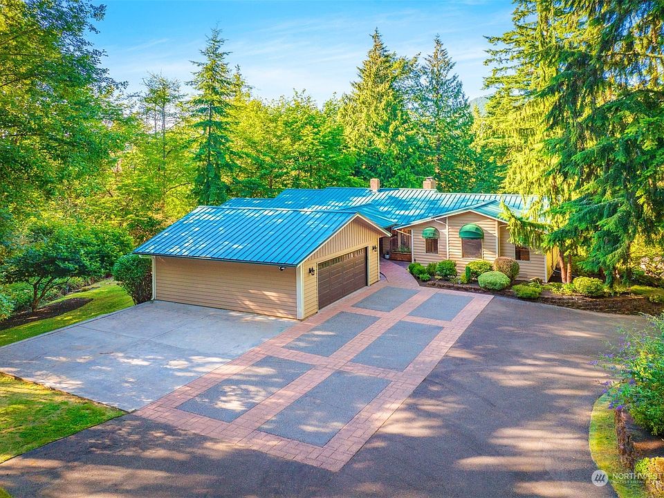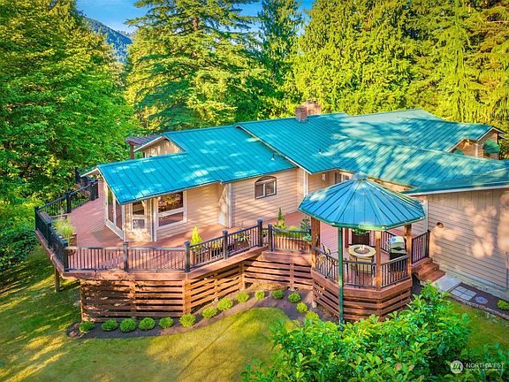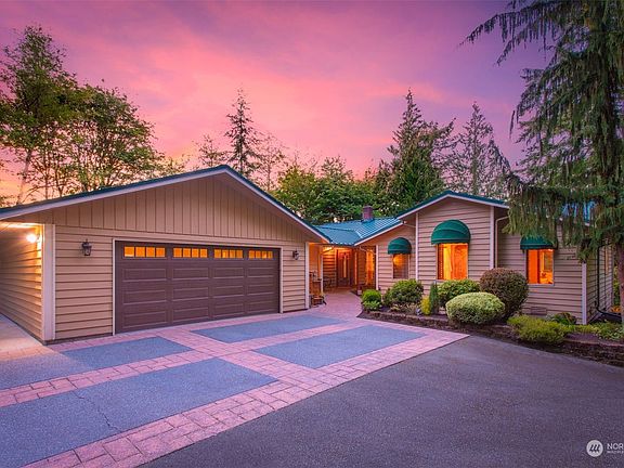 As mature greenery begins to clear, you get your first glimpse of this gorgeous Arlington Heights home! The daylight rambler, nestled on 2.3 quiet acres, invites you to experience unrivaled privacy & serenity. This home has an ideal combination of contemporary Northwest & traditional style; large windows overlook the beautiful landscape. The spacious kitchen is an entertainer’s dream; boasting heated floors & a centerpiece island. The spacious primary & ensuite is down the hall. Downstairs, there are two bedrooms & large bonus room. Enjoy the expansive wrap-around deck w/ a gazebo! The large driveway has plenty of space for parking including RV parking. The beautifully-maintained property is just moments from Downtown Arlington & much more!