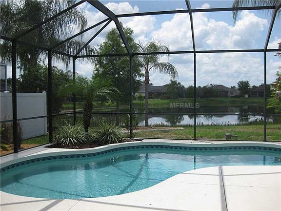 Gorgeous private setting home with your own lake view! Gracious floor plan with almost 2500 square feet, 4 bedroom, 3 bathroom with an additional 4th bedroom that could be used as an office or den as well that includes it's own bath and exit to the pool area that overlooks the sparkling lake. Huge master bedroom has a sitting area, walk-in closet and also a beautiful view of the lake. This home is perfect for entertaining with every room leading out into the covered, screened-in lanai and pool area. Eat-in Kichen includes an island, breakfast bar, pantry and gas powered appliances that makes this truly a working kitchen. Plantation shutters and honeycone shades for privacy, mature landscaping capturing Florida's beauty. Easy commute South to Sarasota with fine restaurants galore and all the shopping you could ever need. Head to the North for sporting events in St. Petersburg and Tampa. Not to mention, easy 2 hour drive to Disney! This home won't last long- schedule your private showing today!