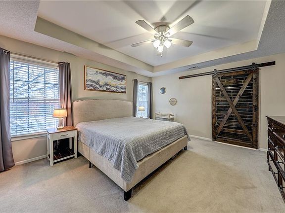 THE one you've been waiting for! Totally updated 2 story home on cul-de-sac! Updates include: painted kitchen cabinets, hardwoods from foyer to kitchen, new high dollar carpet on first floor and stairway, interior paint, over the top primary bath remodel separated by barn door, mostly vinyl replacement windows, fenced yard and 22' wide deck! Open floor plan features: 4 bedrooms, 3.5 baths, impressive 2 story foyer, large eat-in kitchen open to spacious family room with fireplace, pantry, large owner's suite with sitting room and vaulted bath with shower and tub, finished lower level with wet bar and spacious room sizes throughout! Located in convenient area of Olathe with lots of shopping and restaurants close by!