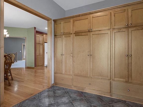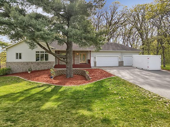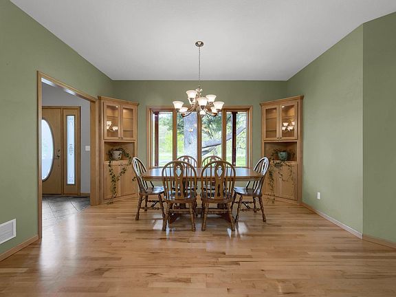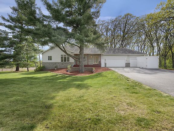Gorgeous newer home on spacious corner lot! This home welcomes you with a walk in entry and a beautiful bright open layout with separate dining area, kitchen with center island, beautiful wood flooring, all with gorgeous cabinetry! There is a spacious living room, sun room leading to the back deck, bedroom with full bath, spacious closet, laundry and office to complete the main level. The fully finished lower level walkout boasts a separate entrance, spacious recreation room , family room, two bedrooms, bonus room, separate 2nd kitchen area, dining space with center bar and laundry (2nd set)- both levels have all living amenities! Additional updates and bonuses include: In-floor heat in basement, 2 gas fireplaces, office with built-in furniture and beautiful views plus , new roof in 2022, new doors and deck boards in 2021, newer furnace and A/C, and perfectly located with acreage woods, trails and wetlands, plenty of wildlife and privacy. This home is a must see!
