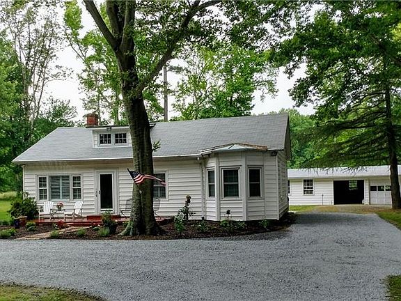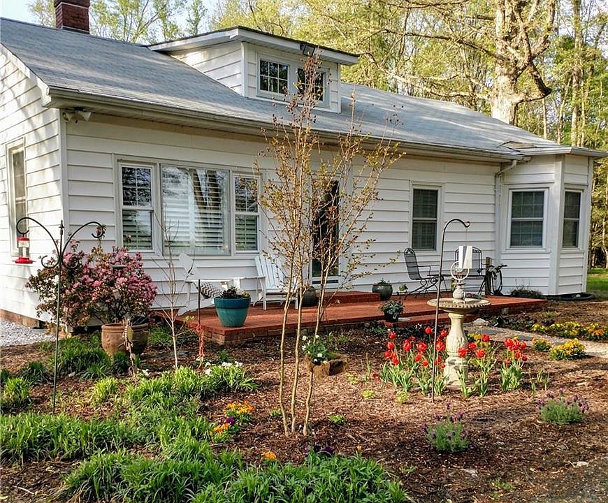 Built as the Parsonage to Independence Church in 1921, this cozy, lovingly maintained cottage is in a storybook setting, peaceful and relaxing. 2/3 bedrooms, 1 bath on 1.5 acres. 9 ft. ceilings with ceiling fans throughout. Hardwood floors. Tilt in thermal windows. Cedar lined closets. Plantation shutters. Enclosed rear porch with new windows and flooring. Oil baseboard furnace heat back up. 22 x 17 pole barn and additional older pole barn. 2 car garage with additional space as combo recreation room with wood burning fireplace, potting shed and workshop with wood stove, total of 1100 sq. ft. Shallow well and deep well. Water filter and softener. House fireplace /chimney cleaned and inspected 2018. New roof in 2015. Refrigerator, washer, dryer and new dishwasher convey. New luxury vinyl waterproof tile with 30 year life expectancy in kitchen. Freshly painted kitchen and foyer. Corner cabinet in living room conveys. Enjoy your mini-farm with your chickens, ducks, goats and the garden area you have been dreaming about! House, fireplace, chimney, additional outbuildings sold "As Is" As Is addendum required with all offers. Inspections are for informational purposes only.