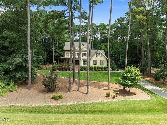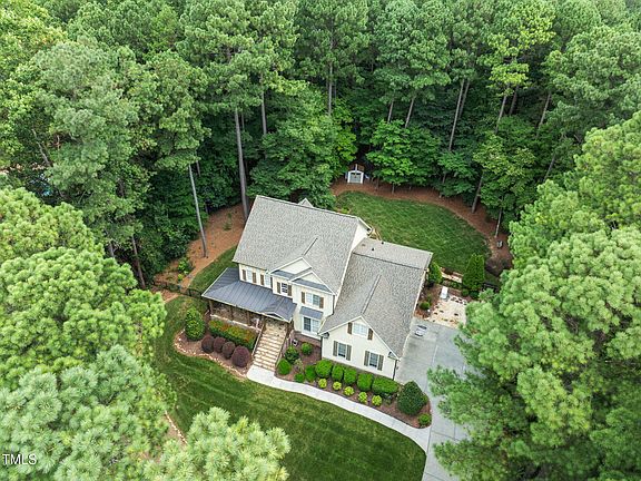 Welcome to this truly special home nestled on a generous 1.27-acre lot with a 3-car garage. Enjoy your morning coffee or unwind in the evening on the welcoming wraparound front porch, surrounded by nature. Inside, the open floor plan offers comfortable flow and functionality. The heart of the home is the spacious kitchen with stainless steel appliances, a large island, and seamless connection to the family room featuring custom built-ins and a wall of windows that fill the space with natural light. One of the standout features is the finished third floor that's been transformed into a unique wine room and tasting area, complete with a kitchen space—an ideal spot to host friends or enjoining quiet evenings surrounded by your favorite vintages. Step onto the oversized screened porch or gather around the backyard fire pit—perfect for both entertaining and everyday living. A first-floor guest suite with a private bath makes an ideal in-law suite, home office, or craft room. The fully fenced and beautifully landscaped backyard includes outdoor lighting and a shed for storing tools and equipment. Located just minutes from Falls Lake, this home blends comfort, style, and convenience in one special setting. Other notable features: This home has 2 water heaters and one was just recently replaced. Don't miss the opportunity to experience all this home has to offer—inside and out. Schedule your private showing today and see why this property is truly one of a kind!