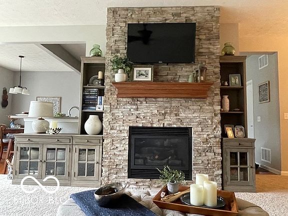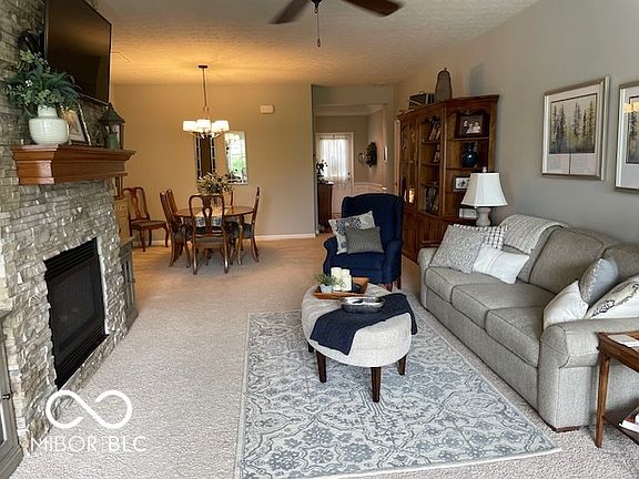 Gleaming hardwood floors in the Foyer welcome you to this charming well-loved and meticulously maintained ranch home. This beautiful 3 bedroom, 2 bath home is on a premium lot and located just minutes away from shopping, dining, entertainment, medical facilities and all that Fishers has to offer. You will appreciate the dramatic custom floor to ceiling stone gas fireplace (Installed 2016) on those cooler evenings! The inviting kitchen and adjoining breakfast room features hardwood floors, beautiful 42" cherry cabinets with crown molding, corian counters and stainless appliances. The master suite's bay window fills the room with natural light. There's so much to appreciate in the master suite with a walk-in closet and bath with double sink vanity, tiled floors, soaking tub and separate shower. The front bedroom also has a bay window and walk-in closet. The cozy sunroom with tile floors is the perfect place to curl up with a book or enjoy a glass of wine while enjoying the view of the back yard. And an AMAZING back yard it is, a true retreat with nature with the beautiful trees, bushes and flowers. The 22'x14' pavered patio is an ideal setting for relaxing, grilling or entertaining. Having a fenced yard is a true rarity in a maintained community and provides so much privacy, while the HOA does the mowing and snow removal for you. Finished garage with 4' garage extension with wire shelving. Furnace and AC serviced annually. SHOWINGS START SATURDAY. JUNE 15