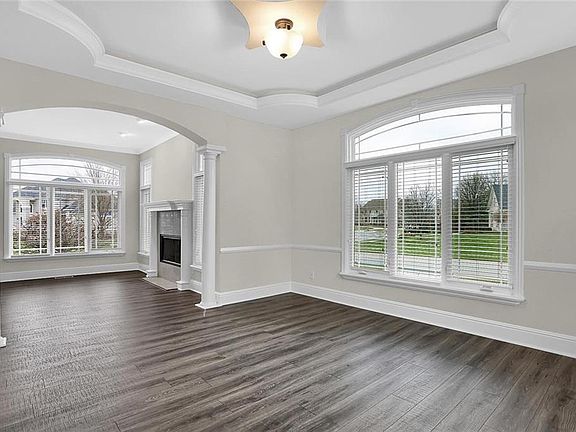 Beautiful EXECUTIVE Home located on large corner lot w/ gorgeous details at every turn. BRAND NEW Stunning floors, columns, tray ceilings, fireplaces & large windows w/ transoms allowing for lots of natural light throughout home Main Floor Den/Library that can be MAIN FLOOR GUEST SUITE complete w/ Full Bath. Gourmet Kitchen w/ center island & breakfast bar, lots of storage & eat in area opens to 2 story Great Room w/fireplace & wet bar. Master Suite Retreat w/ sitting area, 2 way fireplace to bathroom and tray ceiling. Upper Level loft w/ built-ins. Walkout Lower Level features rec area, wet bar, stunning movie theater & workout rm. Great outdoor space w/ spacious deck & fenced backyard your summer entertainment.