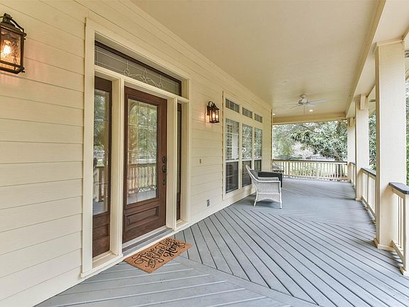 5 Amazing acres and the home of your dreams with wrap around porch- right in the heart of Cypress! Located in the private, gated neighborhood of Estates of Dry Creek. Bring the horses to their new home, too, in the 3 stall barn. Your guests will have a relaxing place to getaway, as well, in the large Guest Room and full bath above the detached 3-car garage. Southern charm exudes from the moment you enter from interior transom windows to historic, reclaimed wood floors. Each room is spacious with a perfect floorplan for entertaining or family time. The wood paneled executive study has a custom built desk area that can be closed off. The open Kitchen overlooks the large Family Room and adjoins the Dining Room. Kitchen features granite countertops, apron sink, 5 burner gas stove and double ovens. The Primary Bedroom overlooks the gorgeous acreage and horses. A custom London phone booth welcomes you into the upstairs Gameroom. New roof. Seller owned solar panels with Tesla batteries.