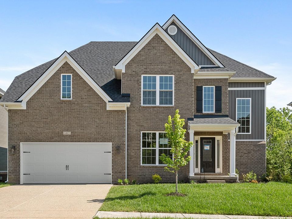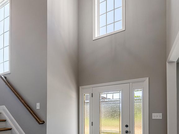 The Jackson II is a spacious four bedroom home with a downstairs guest suite with bay window. The two story foyer has a railed overlook above, and encompasses a stairway with a feature window over the landing. The family room and breakfast overlook the rear yard, and the centrally located kitchen is open to all main living areas of the home, for good traffic flow and entertaining. A large pass-through utility room/mudroom is on the first floor, and accesses a back hallway convenient to the powder room and kitchen. A drop zone is also available leading from the garage to house. Nine foot ceilings throughout the first floor are included. The upstairs primary bedroom suite features a large bedroom with a trey ceiling, and a luxury bath with his-and-hers vanities, linen closet, enclosed commode, garden tub, and separate shower, adjacent to a roomy closet. An alternate second floor layout with the primary bedroom overlooking the back yard is also offered. Three additional bedrooms, one with a large walk-in closet, share a hall bath. Exterior plan details include a front porch, board and batten siding accents, and true radius head windows.