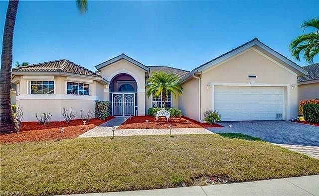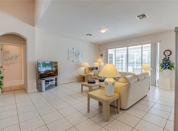 This spacious 3 bedroom 2 bath home in the gated community of Reflection Lakes boasts over 2,400 square feet of living space all on one floor. The home features tile throughout and high ceilings, electric hurricane roll down shutters and central vacuum. The open concept floor plan is perfect for entertaining. The eat-in kitchen overlooks the main living area so you don't miss any of the action and features Corian countertops and a breakfast bar. The oversized master bedroom suite features a sitting area and a private entrance to the screened lanai. The large private master bathroom features his and hers sinks a deep soaking tub and a large tiled walk-through shower. This home features a fenced in backyard with plenty of room for a pool. Also included is an attached 2 car garage, tile roof and brick paver driveway. The community amenities include resort-style pools, tennis courts, full court basketball, sand volleyball, billiards room, well-equipped exercise room, a playground and a private path to nearby Lakes Regional Park for a stroll or bike ride. Low HOA fees. Conveniently located close to shopping, dining and just a short drive to some of Southwest Florida's best beaches.