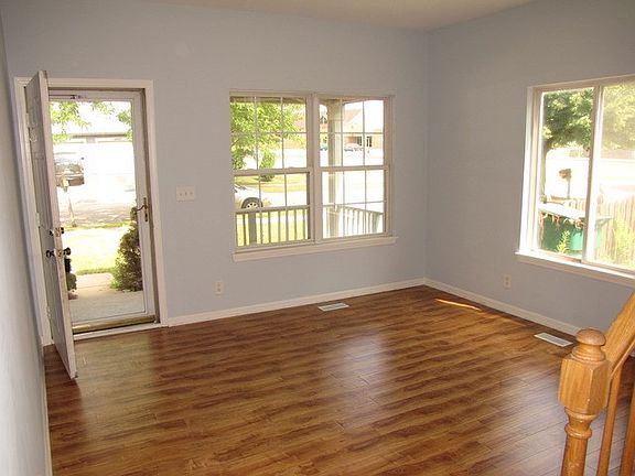 This duplex offers new laminate flooring in the living room, kitchen and family room area! White trim and doors, new carpet in the halls and 3 bedrooms! Master with WIC. Fenced yard, deck! Close to school! Freshly painted. Quick close ok!