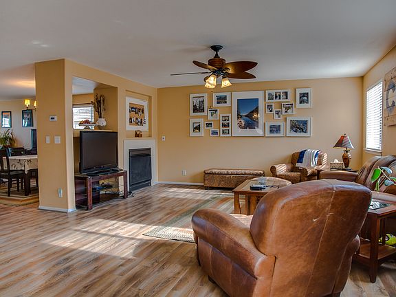 Great location! On a quite cul-de-sac with privately owned land behind it and a greenbelt across the street. The open floor plan boasts tons of space, with a double-sided fireplace between the family and dining rooms. The large kitchen has great counter space, an island and large eating area. New coastal driftwood oak laminate runs throughout the main level. The master bedroom is huge, with a 5-piece bath and large walk-in closet. Three more good-size bedrooms, another full bath and the laundry room complete the upstairs. If that's not enough, the large backyard has low-maintaince xeriscaping. The deck is great for outdoor entertaining.