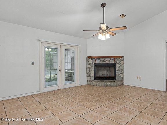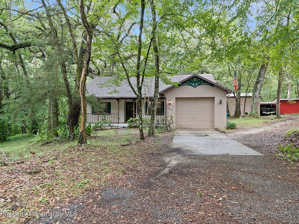 This MOVE-IN READY 3 bedroom, 2 bathroom home is situated on a spacious and serene, 5.1-acre lot just 10 minutes outside of Downtown Brooksville! Built in 1995, this home possesses a unique charm that sets it apart from the rest and would make for a great starter, investment, or retirement home! Upon arriving, you'll notice tiled floors throughout, while the bedrooms provide carpeting for added comfort. Living room features a wood burning fireplace, great for unwinding after a long day or, step outside of the French doors and enjoy the screened-in back porch's inviting swing, overlooking this lush property. For those really looking to relax, there is an indoor hot tub, just off the back porch! This cozy space gives buyers a chance to enjoy a soak, whether it's in the middle of the winter months or rainy season! Being that the room is enclosed, not as much dirt and debris end up getting in the hot tub, making maintenance easier on future owners. Home has an attached 1-car garage and ample sized, detached garage with plenty of space for additional storage, complete with its own restroom, shower, water heater, AND carport! Extra, red storage shed will come with the home as well. This well-maintained property is located off of Lake Lindsey Rd. on just over 5 acres of lush, primarily wooded land that provides extra privacy along with ample space for creative landscaping ideas, boat/trailer parking, outdoor activities, or even possible expansion of the existing home! Sitting just 10 minutes away from historic Downtown Brooksville, buyers will have easy access to numerous local shopping centers, restaurants, schools, medical facilities, and more! Home is situated just 5 minutes away from US-41 and US-98, making commuting a breeze whether it's for work or leisure. Come live the Florida lifestyle with natural springs, hiking/cycling trails, fishing, boating, and more all in your backyard! Schedule your showing today and let your imagination run wild with the possibilities that await you in this charming Brooksville home.