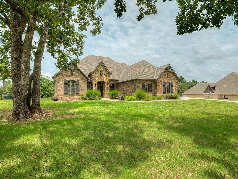 Welcome to Les Chateaux. Located minutes from I-40 nestled in the charming community of Choctaw, you'll enjoy a perfect balance of rural tranquility and easy access to local amenities. This meticulously maintained 3-bedroom, 3.2-bathroom house sits on a serene approximate one-acre lot, offers the perfect blend of comfort and natural beauty. This home is versatile and offers many spaces with alternate uses for varying needs. There is a large designated living area, 2 dining areas, and a study with the option of an additional living room or additional study. Enjoy an open floor plan with ample natural light, perfect for both relaxing and entertaining. The kitchen features stainless steel appliances, gas cooktop with hood vent, plenty of counter space, and an oversized breakfast nook. The primary suite is expansive with a lit double tray ceiling and sitting area that also allows access to the backyard oasis. The ensuite primary bath is a spa like experience with double vanities, a large garden tub, separate walk in shower, and primary closet with custom built ins and numerous hanging racks for multiple season wardrobe. The large secondary bedrooms are serviced by a full bathroom with an additional half bathroom convenient for hosting. The expansive yard, dotted with mature trees, offers a peaceful retreat and plenty of space for outdoor activities. Ideal for families, hobbyists, or those seeking a quiet country escape with city conveniences nearby. Whether you're looking for a family home, a place to entertain, or a peaceful retreat, this house has it all. Schedule your showing today and experience the beauty and potential of this wonderful home for yourself!