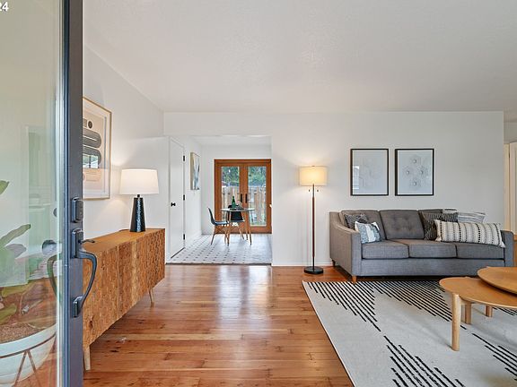 Fabulous full renovation on a huge coveted corner lot near Nike. This sparkling real life dollhouse features a warm and sunny living room with floor-to-ceiling windows, charming brick fireplace, and pretty hardwoods that continue in the two bedrooms. Revamped kitchen has pristine new quartz counters, stainless steel appliances, and freshly painted cabinets. French doors off the dining area open to the spacious backyard. Brand new stylish bathroom with pretty new vanity and glistening tile shower. Stay comfortable year-round thanks to mini split for heat and A/C. Attached single-car garage provides seamless year-round parking and space for hobbies. Plus, enjoy the peace of mind of a brand new roof. Great proximity to Hwy 26, Nike, Intel, and Beaverton schools!