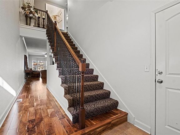 Upstairs, the oversized primary bedroom offers a walk-in closet and an en-suite bathroom. A second bedroom and another full bathroom complete the upper level. The conveniently located laundry space upstairs can accommodate a full-size washer and dryer in a double-stack configuration, adding efficiency to your daily routine.