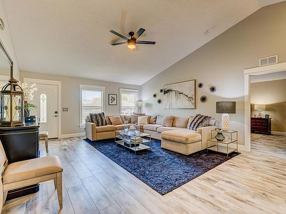 This is the Perfect Home that is truly ???move in' ready. Upon entering this 3 bed, 2 bath home you will be drawn into the lavish porcelain plank flooring that encompasses the entire home. The pride of ownership can be seen in the attention to the detail. Solid wood interior doors, custom moldings, newer stainless steel appliances, solid wood cabinets, Kitchen Island, granite counter-tops. The home boasts a formal LR, Dining area, FR and Lanai. Let us not forget about the ???man cave/theater room. A split plan allows privacy and comfort for your family. Enjoy the master en-suite with walk in shower, dual sink custom vanity, and dual walk in closets, garden tub and Bluetooth speaker. All this and a tech savvy home. All within minutes to the Suncoast Pkwy, Shopping, Restaurants and Fun.