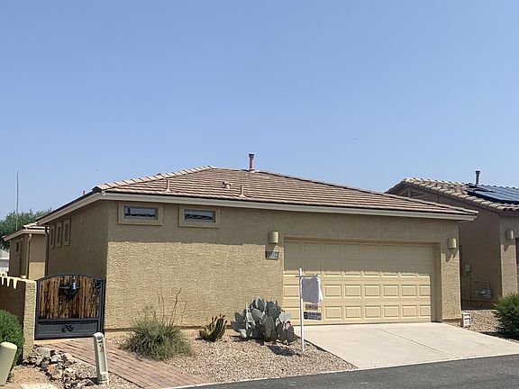 Just a lovely home in 55+ community. 2 bedrooms plus a den. very open floorplan as kitchen, dining area, and great room are all very open and very close together. Nice carpet and large ceramic tile. Granite counter tops. with great island in kitchen with breakfast bar too. and double sinks. Kitchen gas stove. Stainless steel appliances. Just a beautiful kitchen. Nice neutral colors all over the house. Laundry room has cabinets above washer and dryer. 2 patio courtyard areas Ceiling fans all over the interior. .Garage door replaced a couple of years ago, You will love this home. Community with pickle balll tennis, fitness center, pool, spa, putting green and lots of activities. Call agent to get the gate code for entrance into the subdivision.
