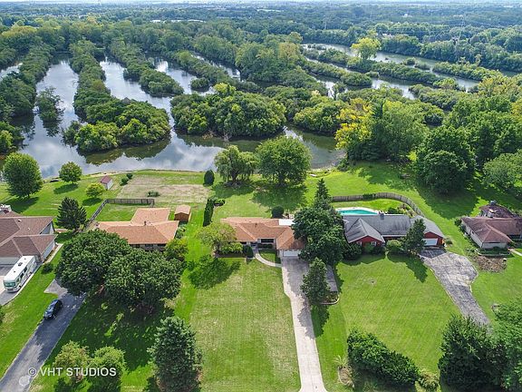 Vacation year round in your walkout ranch on almost an acre backing to private lake! Newer wood laminate flooring in kitchen, foyer and dining room. Kitchen has breakfast bar, planning desk, plus pantry and is open to dining room. Master suite has private bath with dual vanities, large walk-in closet and access to rear deck. Good sized bedrooms. 1st floor laundry room plus enclosed porch. Full finished walkout basement has bar and family room area with access to patio and backyard. Separate recreation room with full bathroom plus 4th bedroom. Plenty of storage and hookups for second laundry in lower level utility room. Large workshop with staircase from garage and overhead door to backyard and shed. 2 car garage with gas line for heat and access to basement. Enclosed porch, large deck and patio all have views of large backyard and lake. HUGE backyard leads to private lake. Low unincorporated taxes. Plainfield Dist 202 schools. Tons of potential on a great lot with an amazing view.