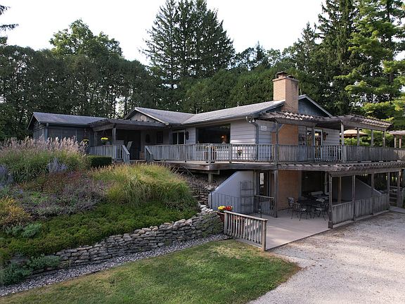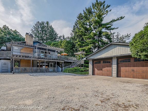 Opportunity of a lifetime. For the very first time, this historical property is on the market since it was purchased from the U.S. Government in 1843. 50+/- acres carved by the last glacial ice age that retreated 12,000 years ago. This incredibly unique property welcomes you in as you pass through the privately gated entrance. Making your way up the driveway, the hilltop home quickly grabs your attention. It features a finished walkout basement main entrance with a cozy family room, complete with a wood burning fireplace, adjacent dining area and full bathroom down the hall. The remaining space includes a large laundry room and storage room which could be repurposed into an additional bedroom, or other dedicated room of your liking. Upstairs, you'll find the main living space with a large, fully functional kitchen and dining area. Just off the kitchen is a welcoming dining room with warm oak wooden floors, additional fireplace and huge picture window with natural light streaming in. The main hallway leads to a large master bedroom and guest bedroom with a full bathroom adjacent. A third bedroom off the hall was transitioned into a cozy den, which could easily be converted back to its original use as a bedroom. An elevated, wrap around deck offers ample space to grill out with family or for hosting guests with big sky views. A notable feature connected to the deck is a beautiful cedar screened in porch with vaulted ceiling and accent lighting. There's plenty of room for vehicle and equipment storage with a detached 24 X 40 garage, and separate 40 X 80 metal pole barn with concrete floor. The remaining acreage consists of the ideal blend of wooded acreage, pasture, ponds and tillable land. The tillable acreage consists of roughly 20 acres of income producing land. A true gem of this property is an oak tree savannah, comprised of approximately 18 acres. A meticulously mowed internal trail network exists throughout the property for ease of access and enjoyment. The grounds of this property leave you with a true sense of discovery and uniqueness around every turn. Gated entry, professionally designed gardens, creekside gazebo, oak savanna, bubbling stream, tranquil pond, and mature hardwoods await. Truly a niche, manageably sized property that cannot be replicated in this area. An owner-authored history booklet of the property is available upon request. A tour of the property is truly worth 1000 pictures. All this, just 5 miles south of Lake Geneva, Wisconsin!