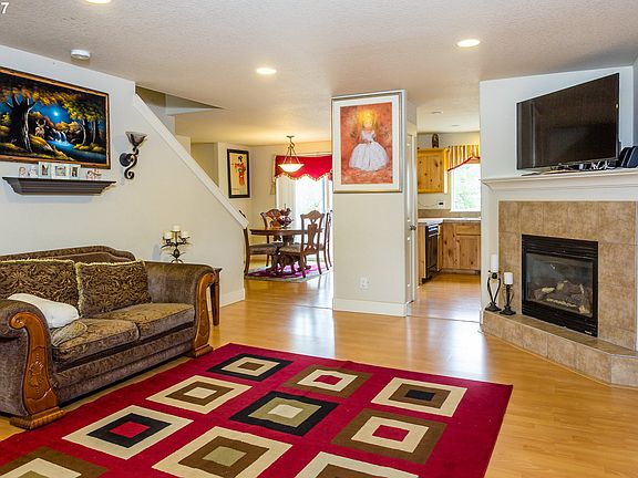 This 4 bedroom sets in a cul de sac ~ Offers high ceilings throughout ~ Home Office/4th Bedroom. Open Kitchen offers eating bar, built in micro, spacious cabinets, lots of light ~ Dining room off kitchen with slider to back yard. Living room with gas fireplace that offers a large mantle. Spacious master suite ~ Plus 3 more good sized bedrooms. 2 car garage. Close to 205 freeway, Max line and shopping.