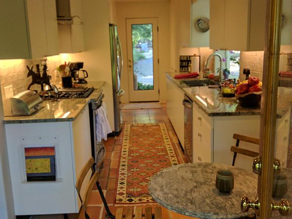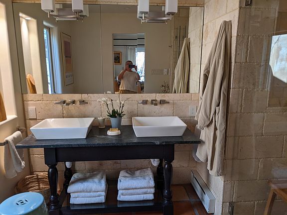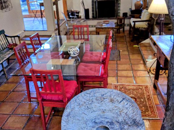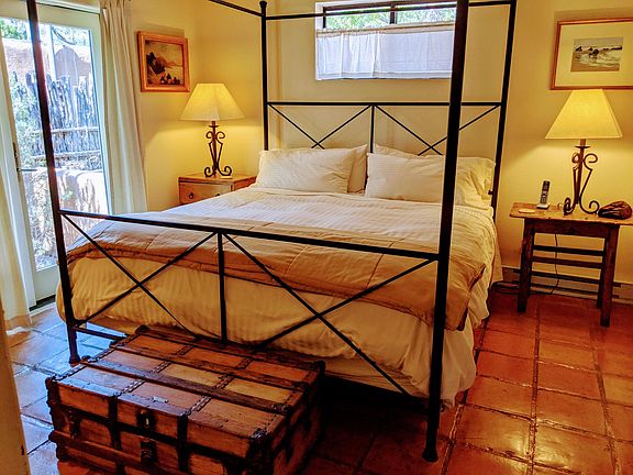 PLEASE NOTE SOMEONE TOOK THIS LISTING AND PLACED IT ON CRAIGSLIST FOR $1650/MO. THE LISTING HAS BEEN FLAGGED AND A NOTICE PLACED ON CRAIGSLIST LISTING IT AS A "SPAM LISTING." We apologize for any confusion this has caused. Our home is back on the market as we were unsuccessful with the applications received. Our FULLY FURNISHED home sits along Little Tesuque Creek (with trees growing through the deck) and has a real sense of tranquility and privacy. There are two separate houses on this property owned by different individuals. The renovations to the dining/fireplace area are moving along - granted not as quickly as anticipated. If you would like to see the house in its "as is" condition, you would be welcome to do so and then, if interested ,come back and see it as it should be shown. We are hoping this will all be completed by the end of next week. The house is 1,450 sq.ft, 2 bedroom (queen and king), 2 renovated bathrooms with large walk-in showers (no bathtubs) saltillo tile throughout, f/p, kitchen renovated 2 years ago with new appliances, w/d in unit, gas stove, electric baseboard heating. Approximately 7 miles to The Plaza, hiking trails just up the road, 35-40 minute drive to Los Alamos and Tesuque Village Market is 2-3 miles away. UTILITIES are included in rental price: electric, gas, wifi/tv/landline phone (as cell phones don't always work well in Tesuque), trash removal, water and septic. If the electric bill over the winter exceeds $500. a month, then the tenant will be held responsible for the overage. Non-smoking house. Small dog is welcomed with a pet deposit. A fee will be charged for cleaning the outside area should pet feces not be removed and a fee will be charged for excessive pet hair left in the house and/or on bedding. Garden will require watering.