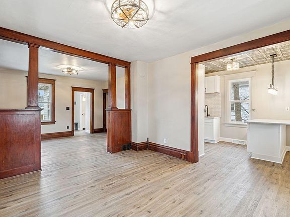 A totally updated classic 2 story. This three bedroom home has original woodwork and a built in hutch. Located on a corner lot with mature trees. Newer double garage, furnace, A/C and insulation. New kitchen, bathroom and flooring. Enjoy the summer breezes on the front porch.