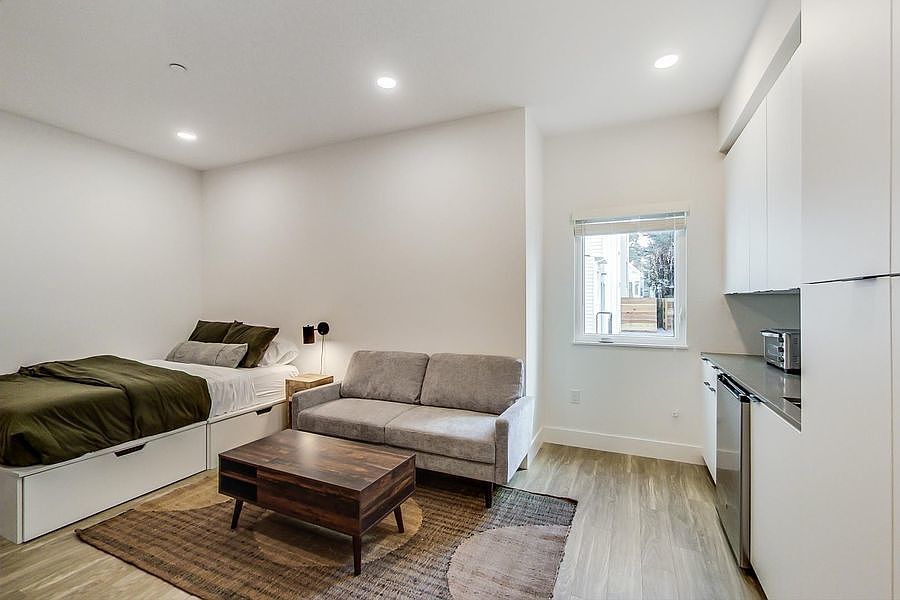 - Exterior features: Balcony, Bicycle storage, Flexible duration lease, Modern bath fixtures, New construction, No cats, No smoking building, Quartz kitchen counters, Secured entry, Stainless steel appliances